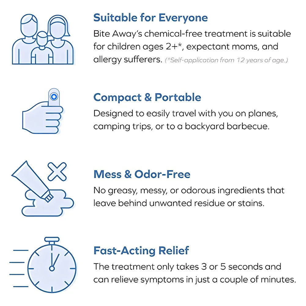This pen is your quick solution to itchy mosquito bites. With its fast-acting formula, it provides relief in seconds without the mess and odor of traditional treatments. Perfect for on-the-go, it's safe for all family members, ensuring everyone can enjoy outdoor activities without discomfort. No more greasy, smelly treatments – just quick, effective relief that you can carry with you.