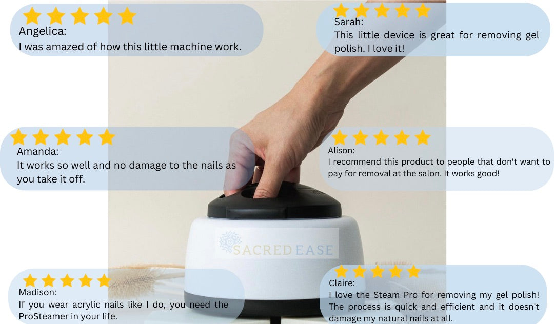 Whether you're a nail enthusiast who loves to experiment with the latest trends or a busy professional who needs a quick, efficient way to maintain your manicure, the ProSteam nail remover is the perfect solution. Reclaim your time and protect the integrity of your nails with this innovative, user-friendly device. Enjoy the confidence and convenience of salon-quality results in the comfort of your own home.