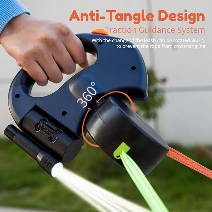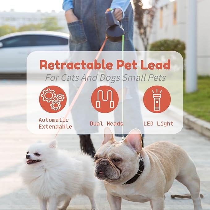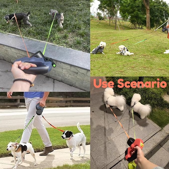 Perfect for Two Dogs: Effortlessly walk two dogs simultaneously with our innovative non-tangling retractable leash, designed to give you individual control over each dog.